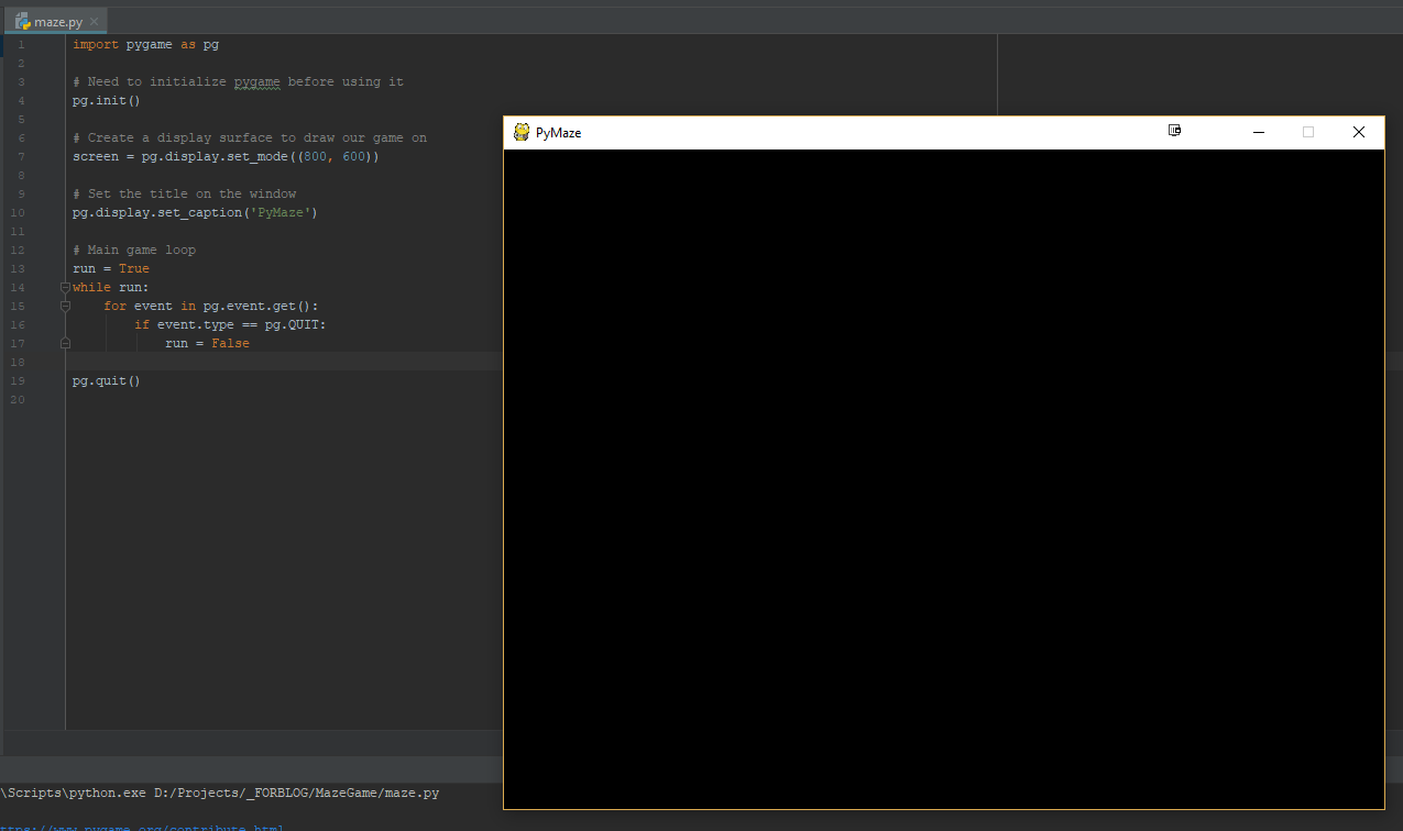 We’ll start by building the simplest PyGame script that just opens a window with a title.